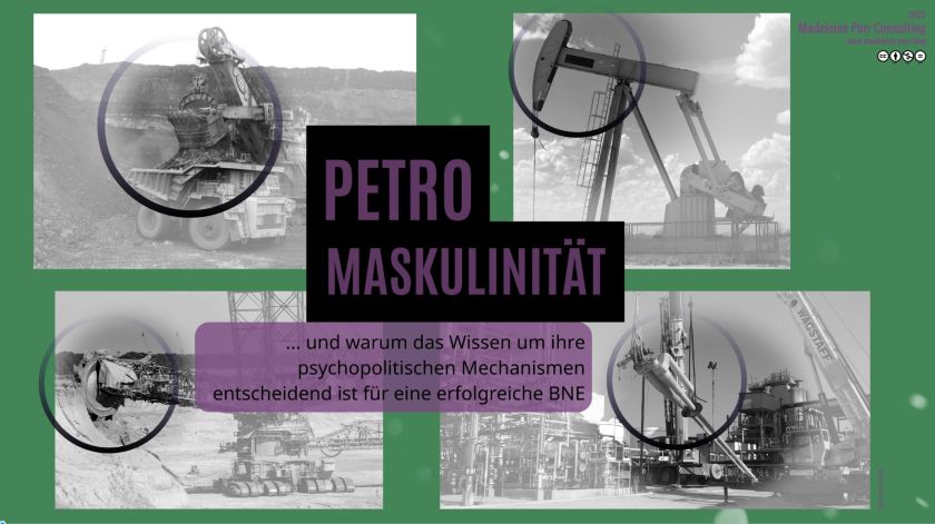 Und sie endet mit dem eindrücklichen Satz: „Petromaskulinität ernst zu nehmen heißt, auf die durchkreuzten Begierden priviligierter Patriarchate achtzugeben, sobald sie ihre fossilen Fantasien einzubüßen beginnen.“